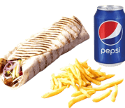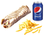 Lavašas, vištiena \ jautiena, stix‘ai, agurkai, pomidorai, raudoni svogūnai, padažas