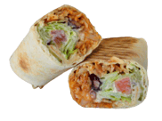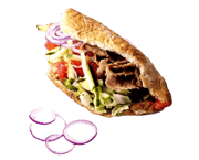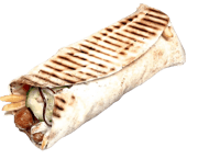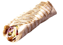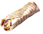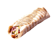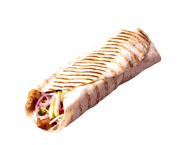Lavašas, vištiena arba jautiena, pekino kopūstai, agurkai, pomidorai, raudoni svogūnai, padažas