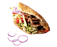 Vištiena ar jautiena, pomidorai,agurkai,raudonieji svogūnai,pekino kopustas,pasirinktas padažas.
